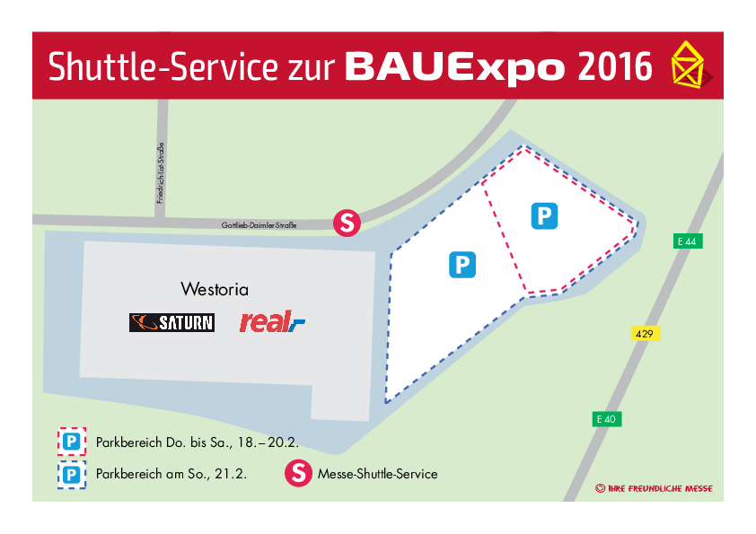 Wo kann man parken? Shuttle-Service zur BAUExpo