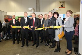 Nachdem Dr. Lösel den Banddurchschnitt vorgenommen und damit die Messe offiziell eröffnet hatte, schloss sich ein gemeinsamer Messerundgang durch die bereits gut gefüllten Hallen an.