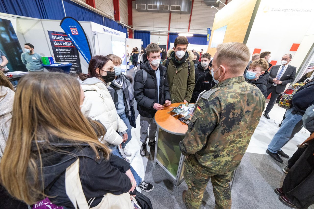Auch die „Bewerbungsstraße“ wurde gut angenommen, sodass Steph Sieber vom Fotostudio Picturebaer bemerkt: „Mit viel Vorfreude und Elan habe ich mich auf die Chance vorbereitet. Die Stimmung war extrem positiv und ich hatte das Gefühl, dass die Besucher froh waren, dass dieses Medium der Messe endlich wieder zur Verfügung steht. Ich habe unzählige Bewerbungsfotos gemacht und viele gute Gespräche geführt. Ich freue mich bereits auf das nächste Jahr“. Mit einem ähnlich guten Gefühl verlassen auch die Angestellten der Agentur für Arbeit die Messe. Der Check der Bewerbungsmappen wurde als hilfreiche Unterstützungsmaßnahme wahrgenommen. Es herrschte durchgängig reger Betrieb und gute Gespräche am Stand, sodass auch die Agentur für Arbeit positiv auf eine erfolgreiche Messe zurückblickt. Die Spürhunde des Zolls auf der Aktionsfläche hatten eine große Fangemeinde, während sie das Beschützen ihres Herrchens oder das Aufsuchen von Zigaretten oder Bargeld demonstrierten.